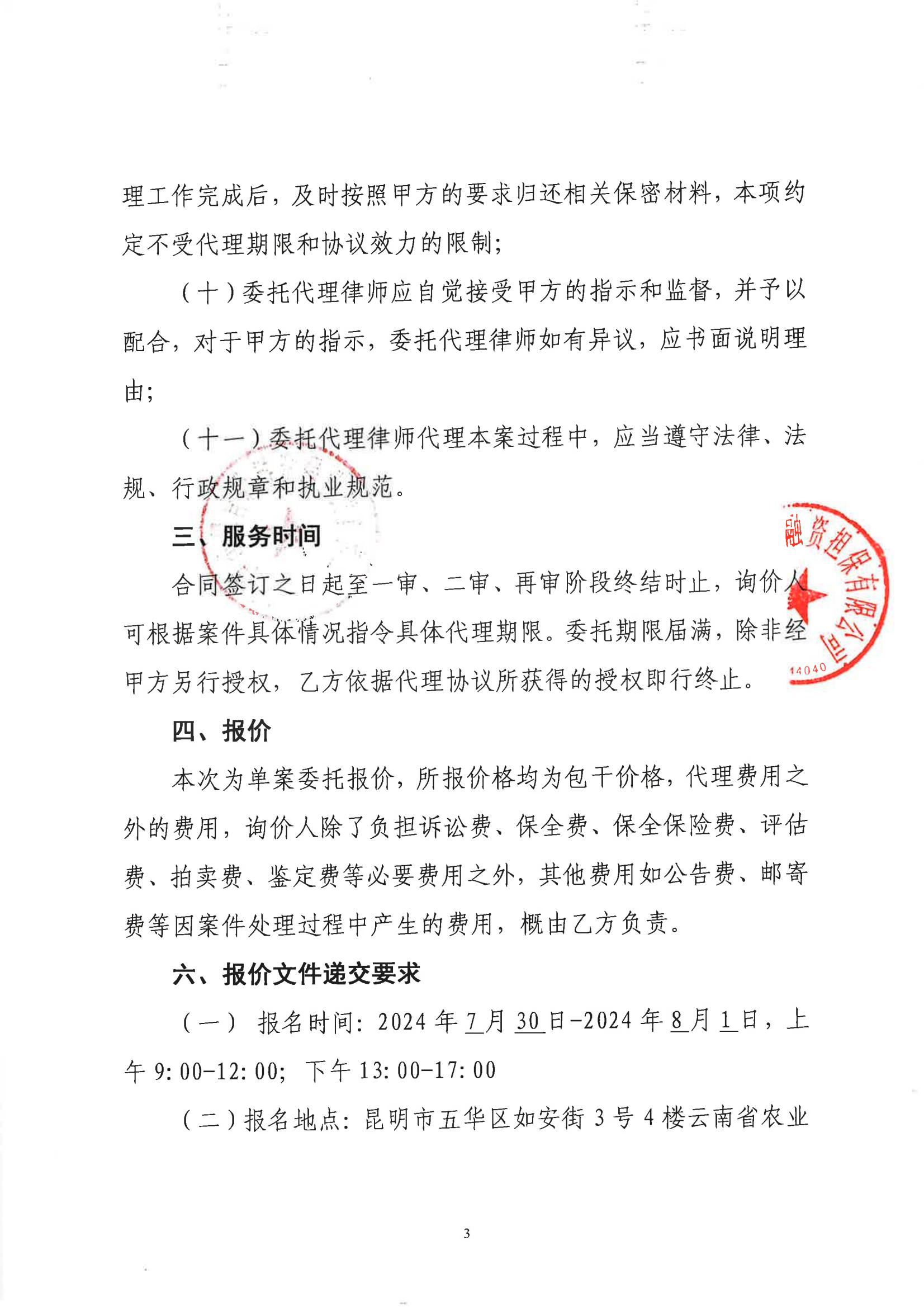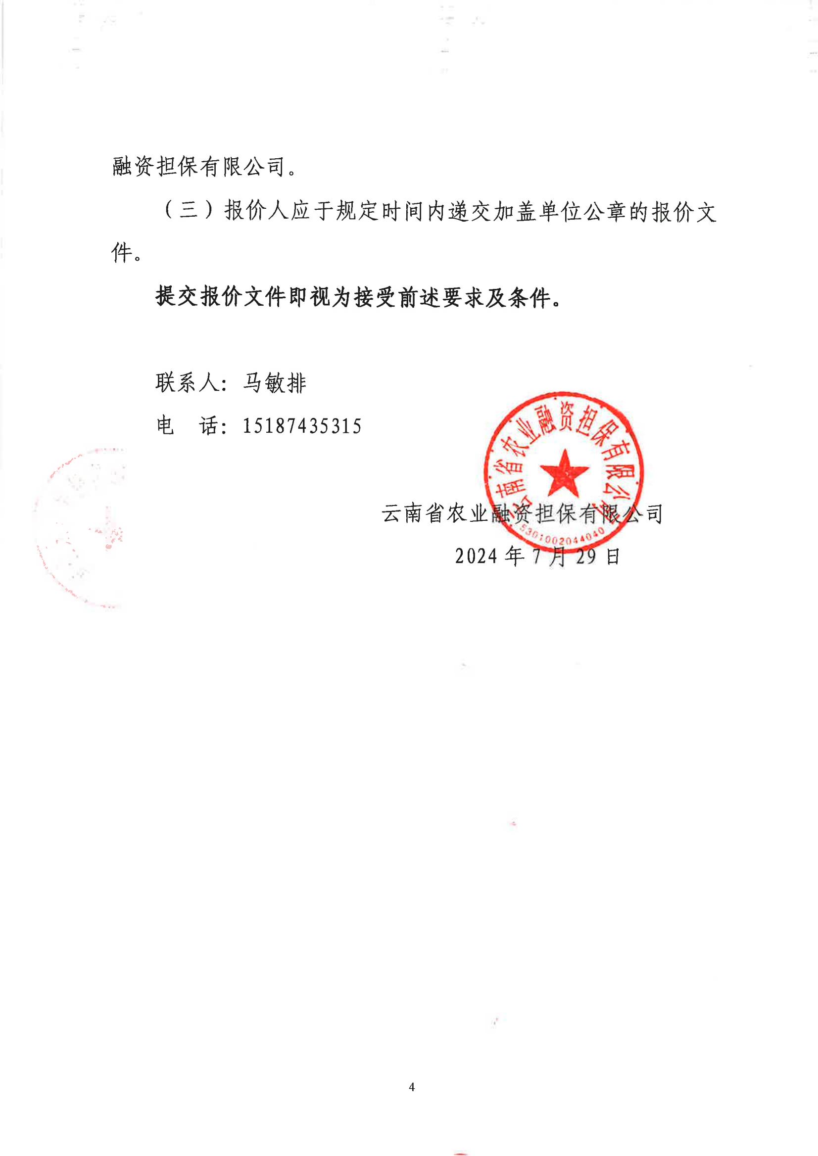 云南省農(nóng)業(yè)融資擔(dān)保有限公司詢價公告