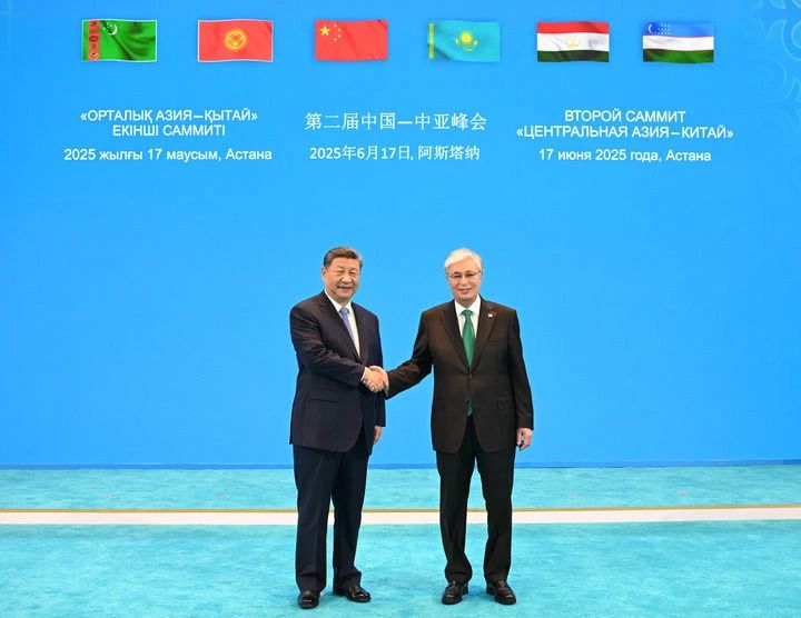 當(dāng)?shù)貢r間6月17日下午,第二屆中國—中亞峰會在阿斯塔納獨立宮舉行。哈薩克斯坦總統(tǒng)托卡耶夫主持會議。中國國家主席習(xí)近平、吉爾吉斯斯坦總統(tǒng)扎帕羅夫、塔吉克斯坦總統(tǒng)拉赫蒙、土庫曼斯坦總統(tǒng)別爾德穆哈梅多夫、烏茲別克斯坦總統(tǒng)米爾濟約耶夫出席。元首們在友好氣氛中共同回顧西安峰會以來中國—中亞各領(lǐng)域合作成果,展望未來發(fā)展方向,一致決定弘揚“中國—中亞精神”,堅持永久睦鄰友好,攜手推動中國—中亞命運共同體建設(shè)不斷取得新成就。