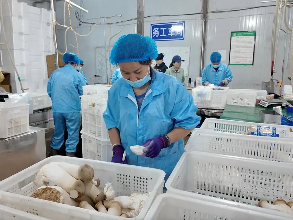 蓬勃發(fā)展的食用菌產(chǎn)業(yè)還催生出助農(nóng)增收的聯(lián)農(nóng)帶農(nóng)機制。陸良爨鄉(xiāng)綠圓菇業(yè)有限公司通過流轉(zhuǎn)土地,帶動周邊600多戶農(nóng)戶種植食用菌,每戶年均增收1.5萬元?!懊總€月打包分揀食用菌能有4000多元的收入,我很滿意。”家住工廠附近的農(nóng)戶朱麗仙說,除了土地租金,周圍農(nóng)戶還可以到車間里務(wù)工,實現(xiàn)家門口就業(yè)。
