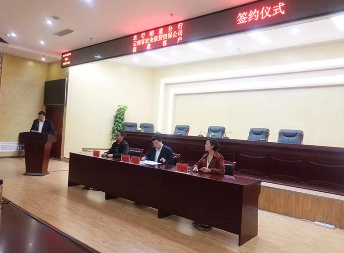 昭通辦事處與昭通農(nóng)業(yè)銀行分行領(lǐng)導(dǎo),各縣行長、信貸經(jīng)理及分行各部門在農(nóng)業(yè)銀行分行共同就前期審核通過借款客戶批量舉辦簽約儀式,昭通辦事處負責(zé)人上臺發(fā)言宣傳農(nóng)擔(dān)政策及業(yè)務(wù)范圍,就下一步與昭通農(nóng)業(yè)銀行深度合作推進進行探討,昭通電視臺對整個簽約儀式進行直播宣傳。