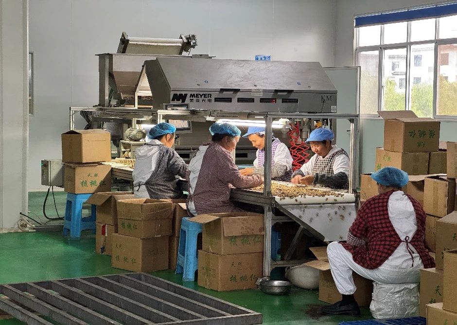 2005年,懷揣著這份赤誠,肖華創(chuàng)辦了福祿食品有限責(zé)任公司。從最初的手工作坊起步,他一步一個腳印,傾注二十年心血,逐步構(gòu)建起“基地種植+精深加工+銷售”的全產(chǎn)業(yè)鏈條。公司年加工核桃達4000噸,成長為州級、省級龍頭企業(yè)。更可貴的是,他通過“公司+合作社+基地+農(nóng)戶”模式,在全縣設(shè)立20多個代加工點,讓分散的農(nóng)戶緊密聯(lián)結(jié)在產(chǎn)業(yè)鏈上,成為了鄉(xiāng)親們信賴的致富領(lǐng)路人。