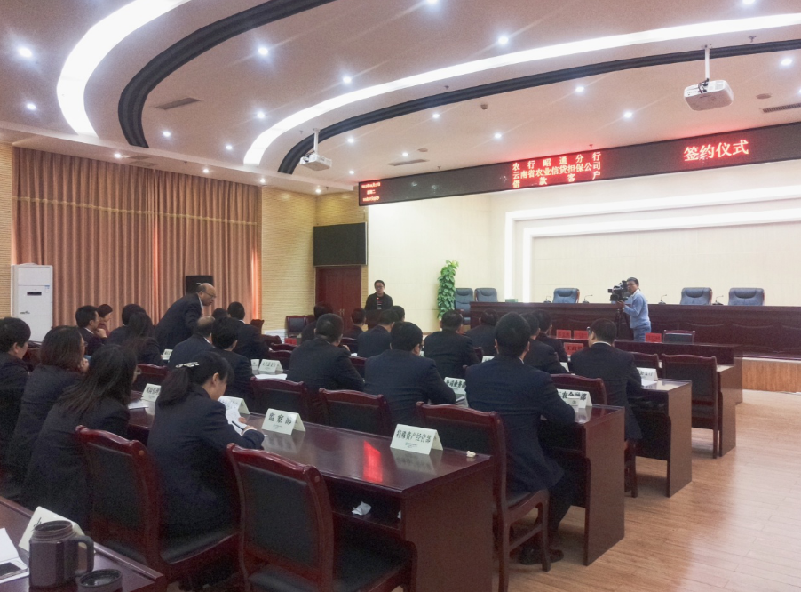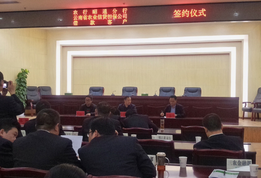 2018年4月17日,云南省農(nóng)業(yè)信貸擔(dān)保有限公司昭通辦事處與中國農(nóng)業(yè)銀行昭通分行共同舉行借款客戶簽約儀式。農(nóng)業(yè)銀行昭通分行黨委書記蔣學(xué)才,分行各部門負(fù)責(zé)人、各縣區(qū)行長、信貸經(jīng)理,農(nóng)業(yè)信貸擔(dān)保公司昭通辦事處人員及借款客戶參加了此次簽約儀式。