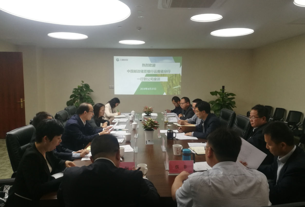 2018年4月27日,中國郵政儲蓄銀行云南省分行孟浩副行長一行到省農(nóng)擔公司座談,公司郭影董事長、杜開波總經(jīng)理、廖寅皓副總經(jīng)理及各部門負責(zé)人出席會議,雙方就下一步展開深度合作展開座談。