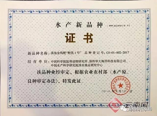 日前,由中國科學院昆明動物研究所聯合深圳華大海洋科技有限公司、中國水產科學研究院淡水漁業(yè)研究中心研發(fā)培育的新品種——滇池金線鲃“鲃優(yōu)1號”,正式獲農業(yè)農村部的官方認定,在水產種業(yè)發(fā)展論壇上獲得農業(yè)農村部頒發(fā)的水產新品種證書。這標志著滇池金線鲃有望實現規(guī)?;虡I(yè)養(yǎng)殖。