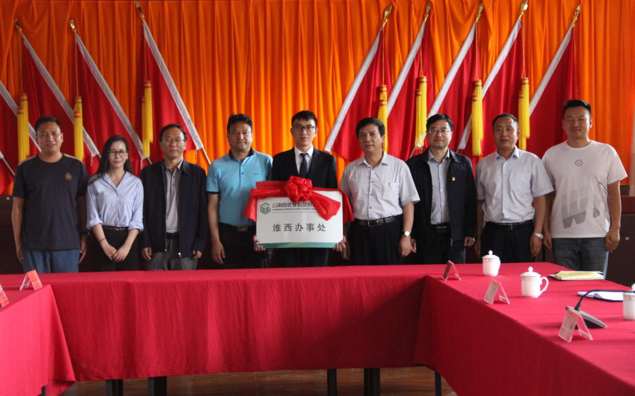 7月8日下午,維西縣人民政府與云南省農(nóng)業(yè)信貸擔(dān)保有限公司(以下簡稱“省農(nóng)擔(dān)公司”)戰(zhàn)略合作協(xié)議簽訂暨維西辦事處授牌儀式在維西縣隆重舉行。儀式由維西縣縣委副書記寧亞寧同志主持。參加儀式的有:省財(cái)政廳黨組成員、副廳長趙曉靜,維西縣縣委書記格桑納杰,縣委副書記、副縣長余春橋、副書記和俊昌,副縣長和榮、楊慧聰、陳剛、金永生、楊金光,省農(nóng)擔(dān)公司董事長郭影、迪慶州財(cái)政局局長楊繼文,縣財(cái)政局(金融辦)、發(fā)改局、工信局、農(nóng)科局等有關(guān)部門,駐維西縣各金融機(jī)構(gòu),省農(nóng)擔(dān)公司相關(guān)工作人員,維西縣農(nóng)業(yè)龍頭企業(yè)和新型經(jīng)營主體代表。