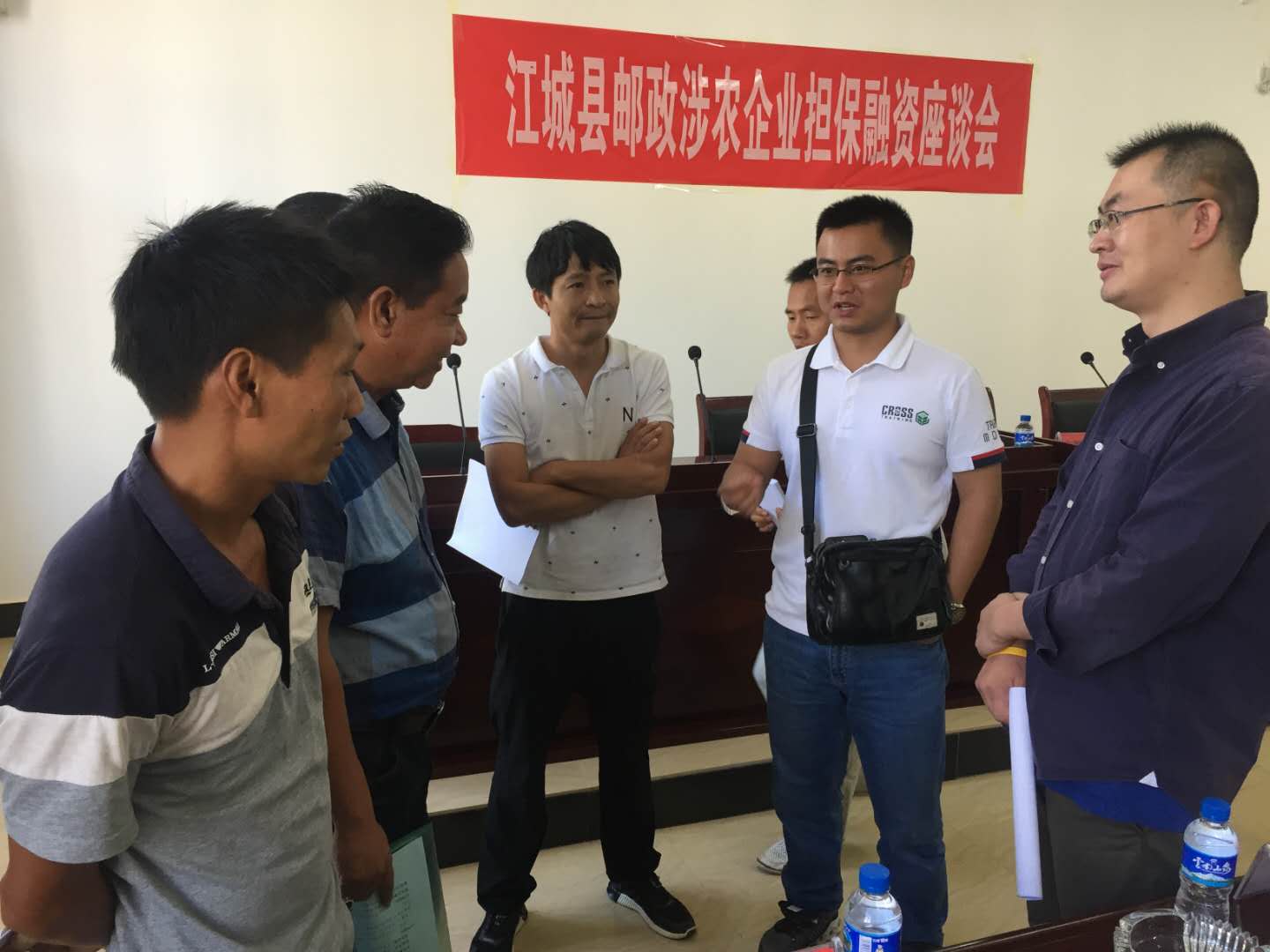 2018年9月21日,為響應(yīng)8月中旬整董鎮(zhèn)會(huì)議精神,經(jīng)多方籌備后,公司普洱辦事處工作人員戴維應(yīng)邀到江城縣參加郵儲(chǔ)銀行舉辦的“銀企座談會(huì)”,與江城縣郵儲(chǔ)負(fù)責(zé)人普及就雙方業(yè)務(wù)范圍和目前優(yōu)惠政策進(jìn)行宣講,江城縣上百家涉農(nóng)企業(yè)參加座談。會(huì)上,普洱辦事處戴維就公司成立背景、政策方向、服務(wù)范圍、當(dāng)前業(yè)務(wù)開(kāi)展進(jìn)度和業(yè)務(wù)流程等進(jìn)行講解,現(xiàn)場(chǎng)與客戶(hù)聯(lián)動(dòng),針對(duì)公司準(zhǔn)入具體標(biāo)準(zhǔn)、資料準(zhǔn)備要素、房產(chǎn)、林權(quán)等反擔(dān)保物標(biāo)準(zhǔn)等具體問(wèn)題進(jìn)行解釋說(shuō)明,為下一步農(nóng)擔(dān)公司在江城縣拓展業(yè)務(wù)奠定了基礎(chǔ)。