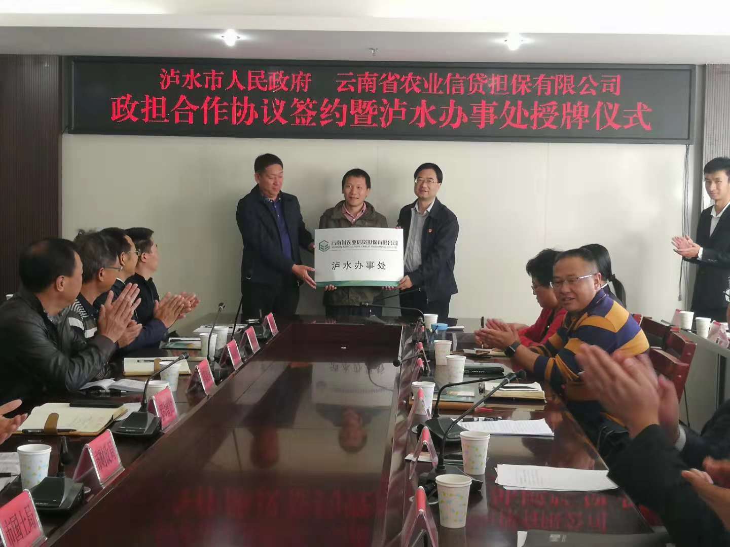 10月24日上午,云南省農業(yè)信貸擔保有限公司瀘水辦事處授牌儀式在瀘水市人民政府正式舉行,瀘水市市委常委、常務副市長羅增賢同志、公司董事長郭影、副總經理廖寅皓出席儀式。