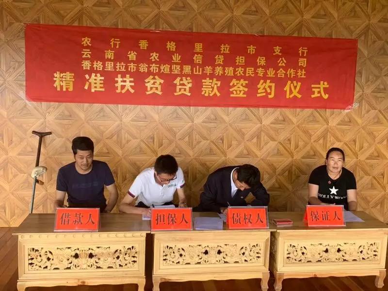 2019年6月25日,云南省農(nóng)業(yè)信貸擔(dān)保有限公司維西辦事處工作成員與中國農(nóng)業(yè)銀行股份有限公司迪慶州分行相關(guān)負責(zé)人及領(lǐng)導(dǎo)一行到達香格里拉市五境鄉(xiāng)倉覺村,與翁布煊堅黑山羊養(yǎng)殖農(nóng)民專業(yè)合作社簽署合同,由云南農(nóng)擔(dān)公司進行政策擔(dān)保,為香格里拉市翁布煊堅黑山羊養(yǎng)殖農(nóng)民專業(yè)合作社發(fā)放擔(dān)保貸款200萬元。