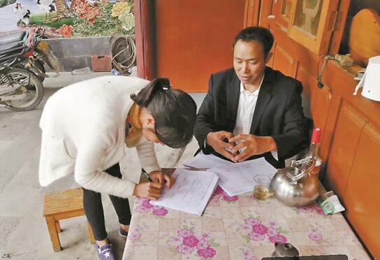 郭彩廷在膽扎社區(qū)麻家寨蔡文鳳家開(kāi)展“掛包幫”工作