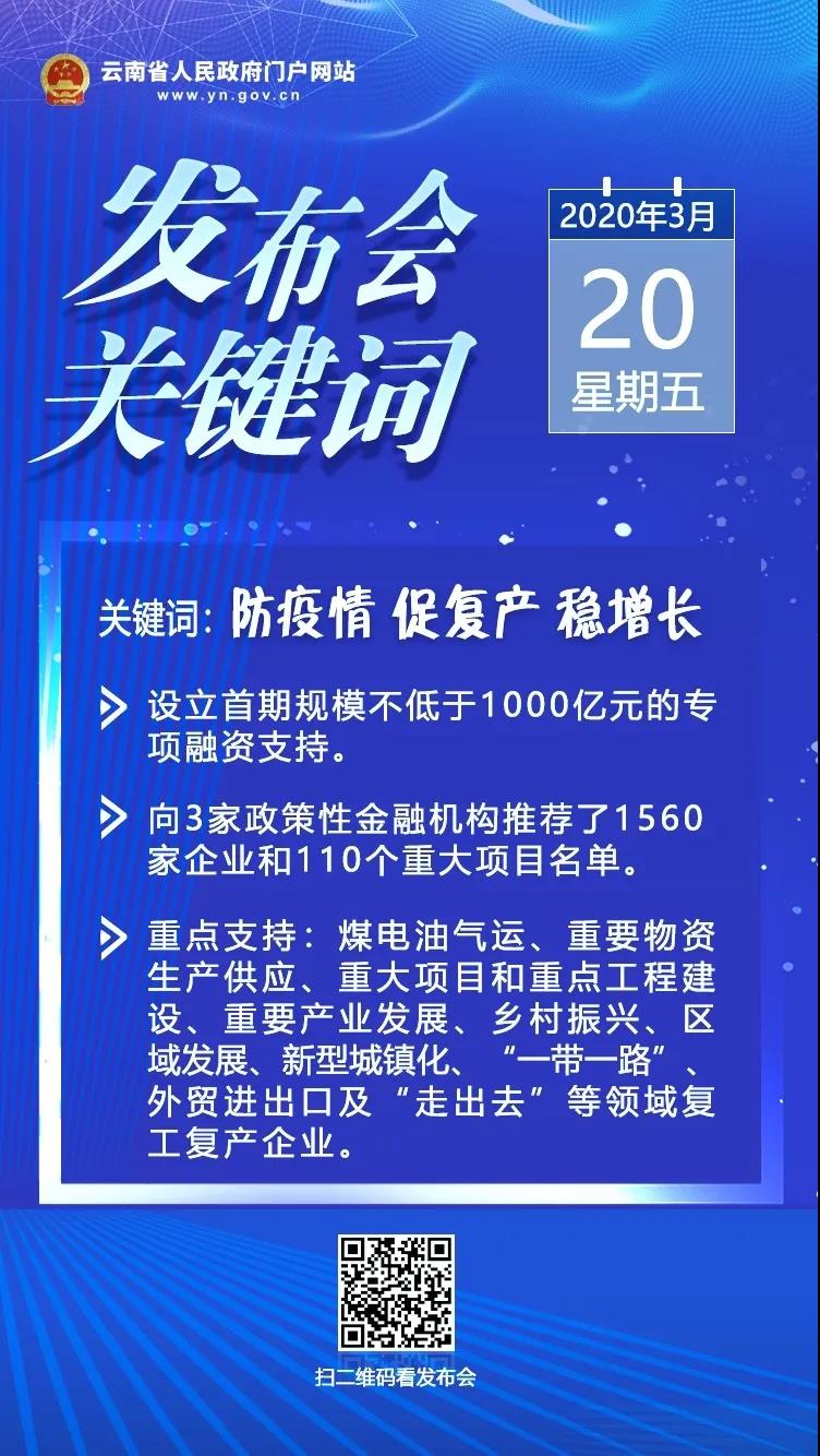 3月20日,云南省新冠肺炎疫情防控工作第二十五場新聞發(fā)布會召開,云南省發(fā)展和改革委員會、國家開發(fā)銀行云南省分行、農(nóng)業(yè)發(fā)展銀行云南省分行、中國進出口銀行云南省分行等單位負責(zé)人,介紹切實發(fā)揮金融支持實體經(jīng)濟作用,保障復(fù)工復(fù)產(chǎn)企業(yè)資金需求有關(guān)情況,并回答記者提問。