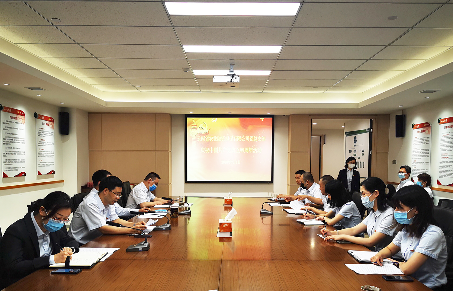 為慶祝中國共產(chǎn)黨成立99周年,激勵黨員不忘初心、牢記使命、奮發(fā)有為,增強黨員的榮譽感、責(zé)任感、使命感,7月1日,云南省農(nóng)業(yè)融資擔(dān)保有限公司(以下簡稱“云南農(nóng)擔(dān)”)開展慶祝中國共產(chǎn)黨成立99周年活動。云南農(nóng)擔(dān)黨總支部書記、董事長郭影作活動講話,活動由黨總支部副書記、總經(jīng)理杜開波主持,公司全體在家黨員參加了活動。