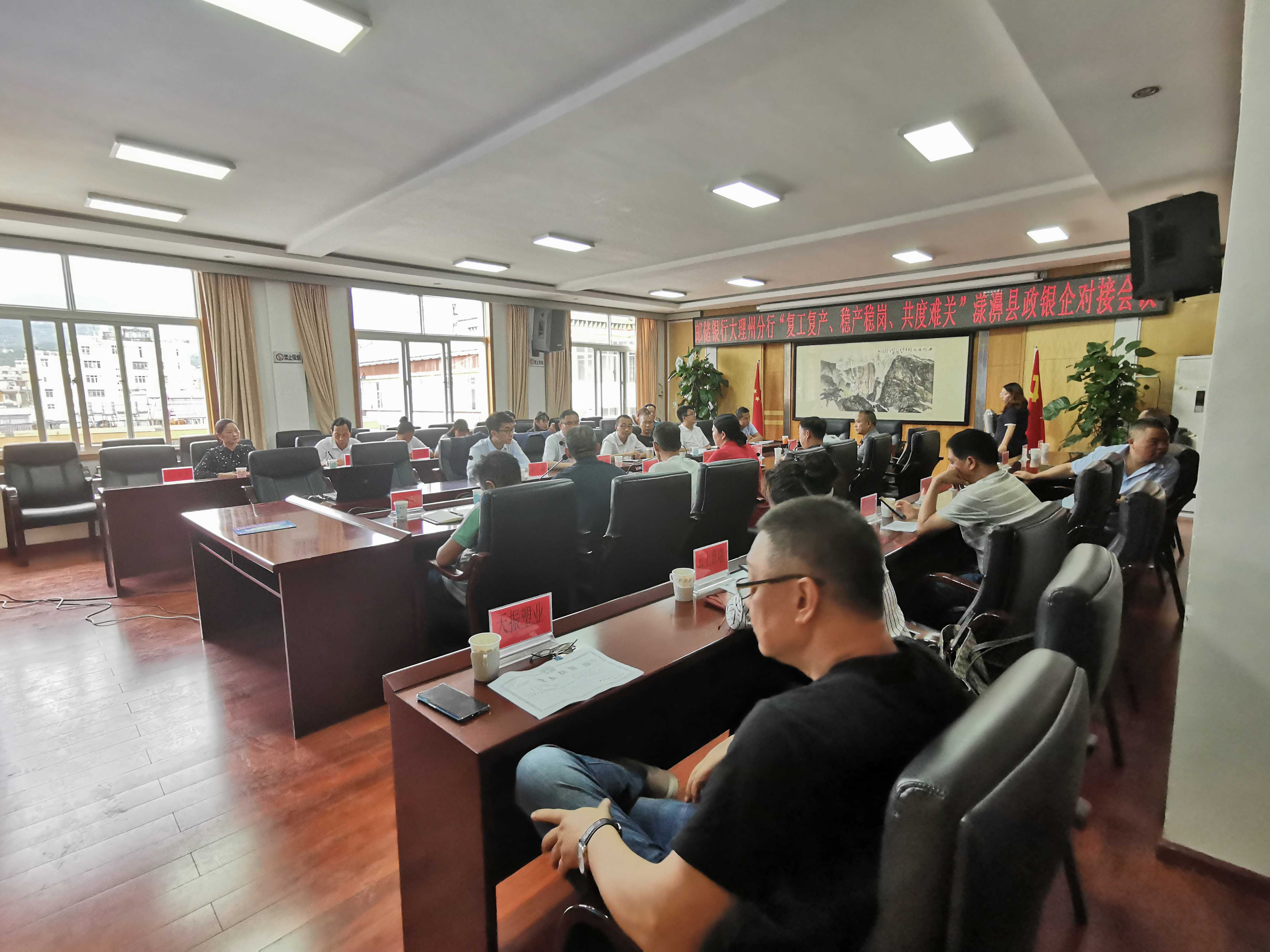 2020年8月29日,大理辦事處應(yīng)郵儲銀行大理分行邀請,參加漾濞縣銀企對接會(huì)議。參加會(huì)議的有漾濞縣人民政府施文妍常務(wù)副縣長,縣工信局、財(cái)政局、扶貧辦、農(nóng)業(yè)農(nóng)村局、林業(yè)草原局、縣人行以及漾濞縣主要小微企業(yè)和合作社,會(huì)議由工信局趙波局長主持。