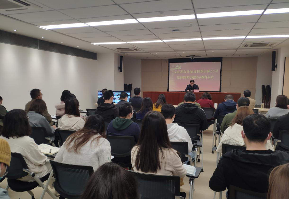 2月20日,云南省農業(yè)融資擔保有限公司召開巡察整改專題警示教育大會。公司黨總支部書記、郭影作巡察整改專題警示教育宣講,組織員工簽訂《農擔從業(yè)禁止事項承諾書》,黨總支部紀檢委員李建華作提升員工廉潔和服務意識培訓。會議由郭影同志主持,省公司全體員工參加了會議,州市辦事處員工通過視頻會議方式參會。