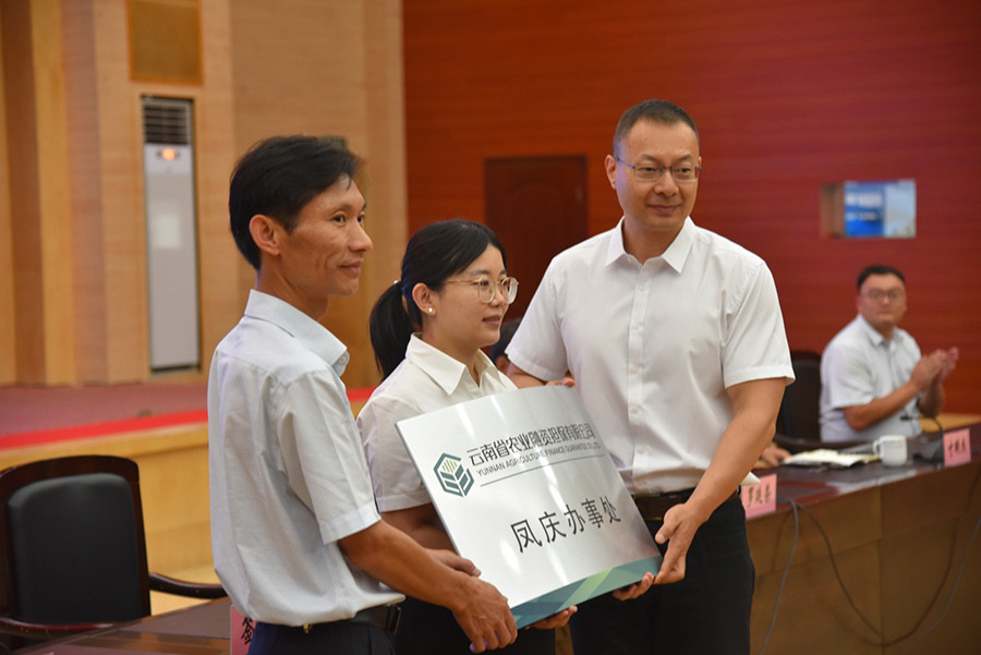 為進(jìn)一步助推鳳慶縣農(nóng)業(yè)產(chǎn)業(yè)振興,發(fā)揮農(nóng)擔(dān)政策性擔(dān)保作用,9月15日,云南省農(nóng)擔(dān)公司鳳慶辦事處授牌儀式在鳳慶縣會展中心報(bào)告廳順利舉行。公司總經(jīng)理李世偉、戰(zhàn)略發(fā)展部經(jīng)理蔡菲、業(yè)務(wù)發(fā)展部副經(jīng)理寸明杰,臨滄市人民政府金融辦公室主任羅廷榮、鳳慶縣委常委、縣人民政府常務(wù)副縣長陳正華、臨滄市農(nóng)業(yè)農(nóng)村局副局長翟國軍等領(lǐng)導(dǎo)出席會議。鳳慶縣各政府部門及鳳慶縣13個鄉(xiāng)(鎮(zhèn))人民政府分管農(nóng)業(yè)農(nóng)村工作的領(lǐng)導(dǎo),縣人行及各金融機(jī)構(gòu)主要負(fù)責(zé)人參加會議。