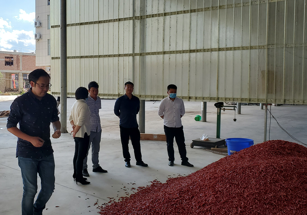 為深入了解硯山縣稼依鎮(zhèn)“辣椒產(chǎn)業(yè)”發(fā)展情況,全面推進(jìn)鄉(xiāng)村振興,加快農(nóng)業(yè)農(nóng)村現(xiàn)代化,2021年11月4日,文山辦事處業(yè)務(wù)主管袁彬攜項(xiàng)目經(jīng)理王忠泉與中國郵政儲(chǔ)蓄銀行文山州分行副行長陳文奎、副行長李洪、小微企業(yè)總經(jīng)理黃繁兵及相關(guān)信貸人員深入硯山縣稼依鎮(zhèn)實(shí)地調(diào)研了解“辣椒產(chǎn)業(yè)”的發(fā)展趨勢,對部分辣椒貿(mào)易大戶及合作社進(jìn)行貸款政策宣導(dǎo)。