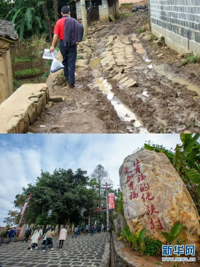 上圖為司莫拉曾經(jīng)的村內(nèi)道路(騰沖市清水鄉(xiāng)供圖);下圖為如今的司莫拉進(jìn)村道路 趙普凡 攝