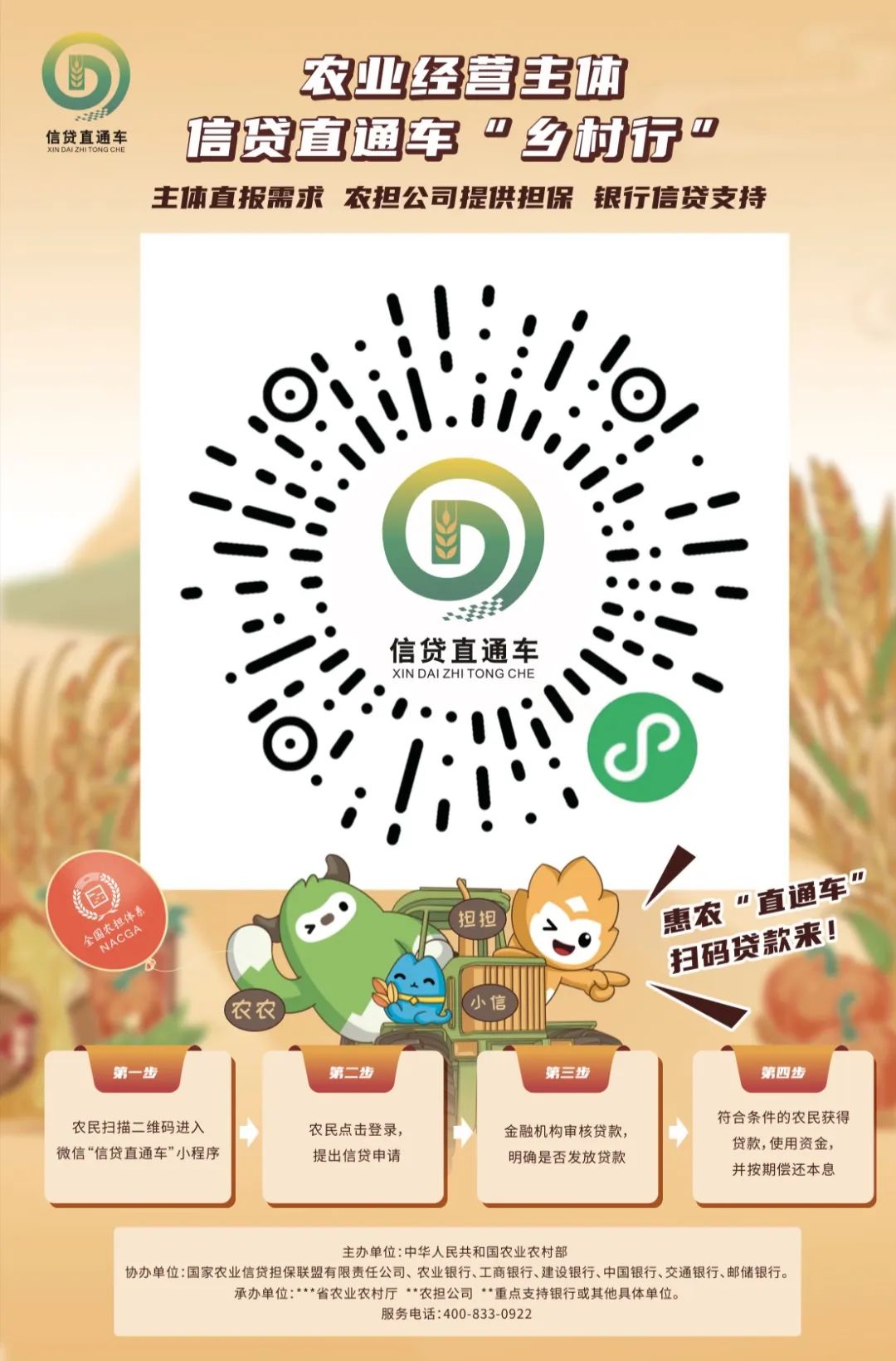 據悉,“鄉(xiāng)村行”活動將通過集中開展信貸直通車專題宣傳推廣,引導大中型銀行機構服務下沉,將更多的農業(yè)農村信貸、擔保、信用、保險等金融知識普及到村到戶,只需掃描宣傳掛圖中的二維碼即可提出融資需求,進一步提升信貸直通車社會知曉度和品牌影響力,擴大農業(yè)經營主體的覆蓋面和受益面,將更多金融資源引村入戶,助力今冬明春糧食生產和鄉(xiāng)村建設