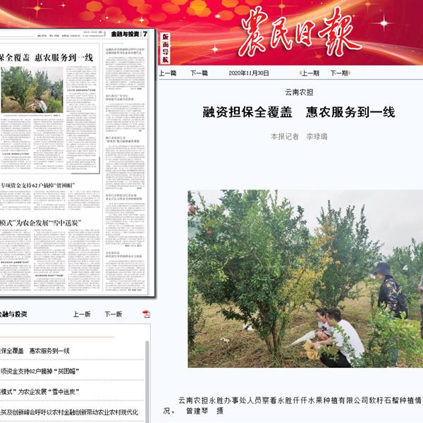 《農(nóng)民日報》點(diǎn)贊云南農(nóng)擔(dān)惠農(nóng)服務(wù)見成效