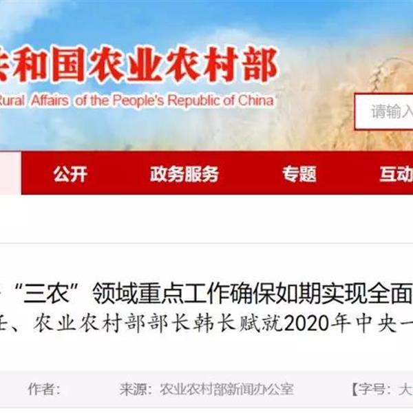 中央農辦主任、農業(yè)農村部部長韓長賦就2020年中央一號文件答記者問